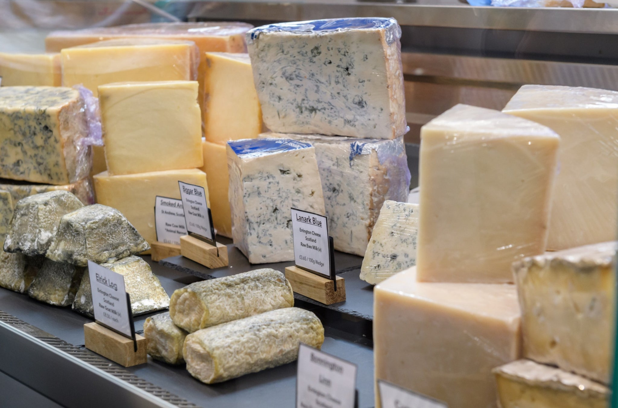 Errington Farm: "Located in South Lanarkshire, at the foot of the Pentland Hills, our farm spans 380 acres of mixed grazing, arable land, and woodland. Just 7 miles from Biggar, 25 miles south of Edinburgh, and 30 miles from Glasgow, it sits at 1,000 feet above sea level, making it a unique landscape for farming. We keep around 400 dairy Lacaune ewes, a hardy breed from the French mountains that thrives in our altitude and climate. Lambing takes place in January and February, with 325 ewes milked each year from spring through to September. Their rich, high-fat, low-lactose milk is used to make Lanark Blue, Corra Linn, and occasionally Sir Lancelot, continuing a cheesemaking tradition that has been at the heart of the farm for nearly 40 years. Throughout the year, the sheep follow a natural cycle—grazing on pasture during the warmer months and coming indoors during winter. Their diet is built on grass, hay, and silage, making them perfectly suited to a farm where grass flourishes."